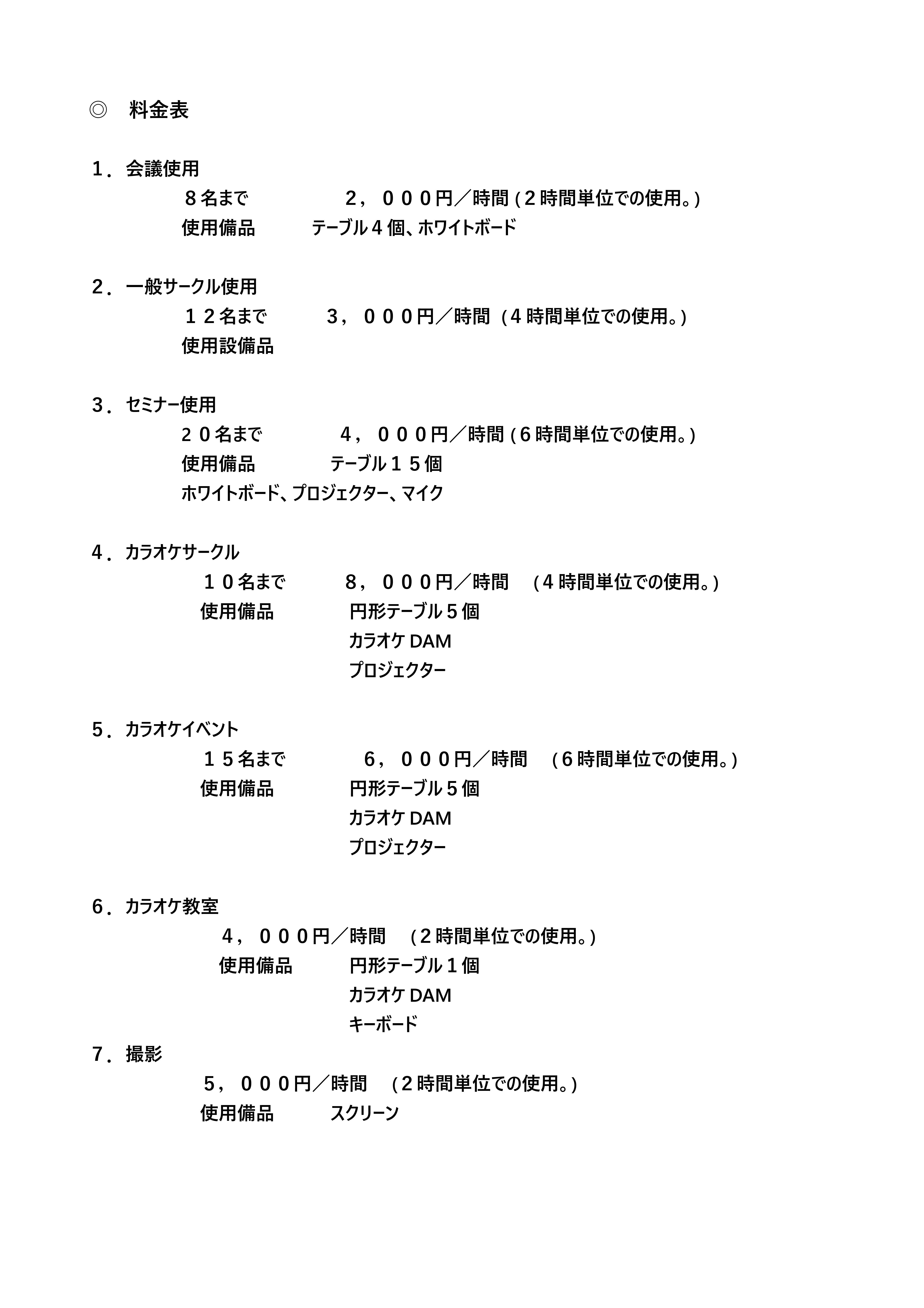 ◎スペース・備品使用料金概要