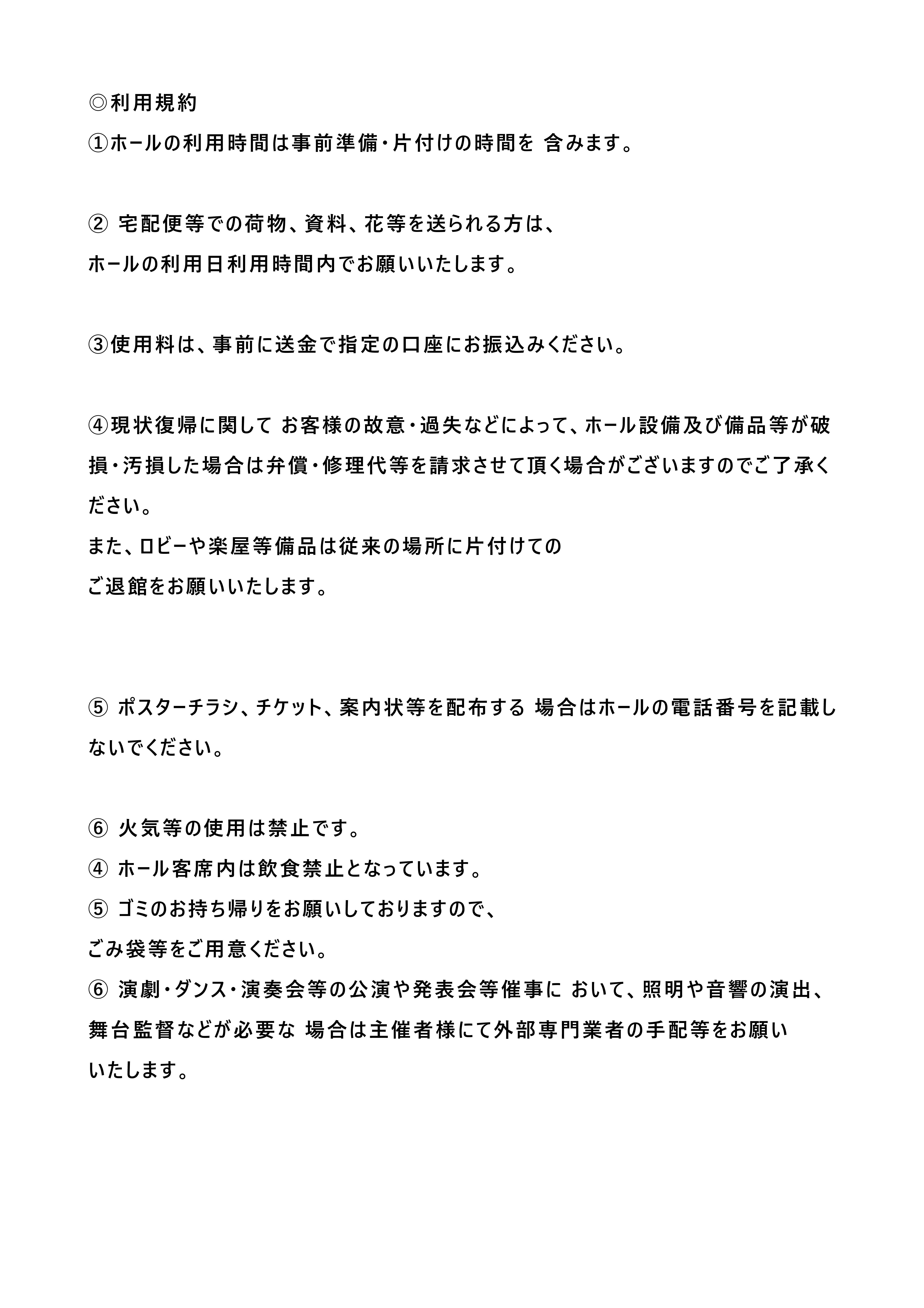 - ホールの利用時間は事前準備・片付けの時間を 含みます。